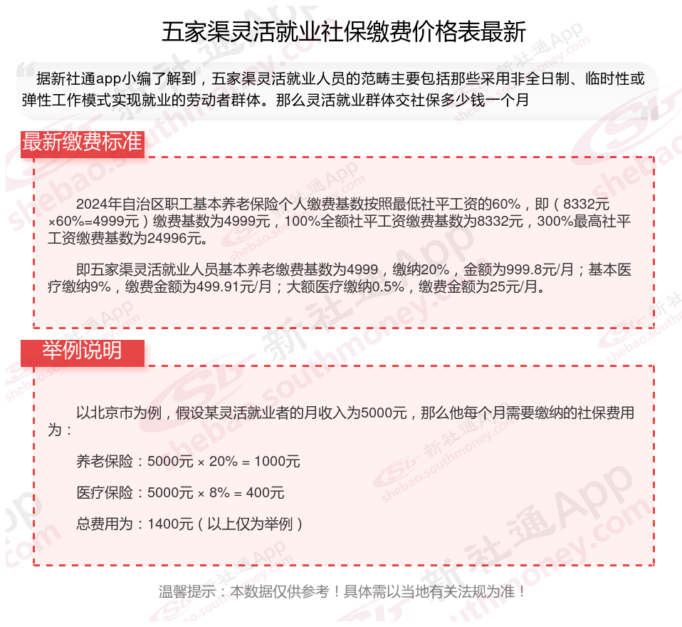 以上就是带来五家渠灵活就业社保缴费标准相关知识,内容及数据仅供参考,希望对你有帮助,欢迎关注/下载新社通app解锁更多社保专业资讯。