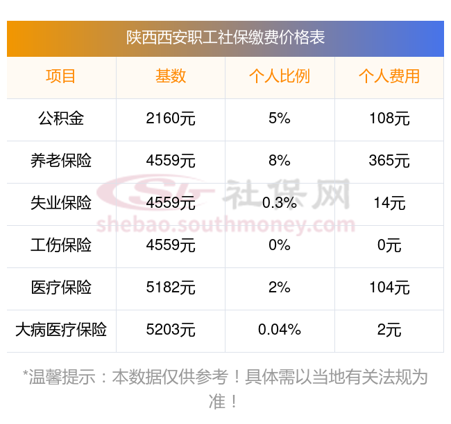 五险一金扣多少?陕西西安五险一金扣多少钱?下表是2024-2025年陕西西安社保费用明细参考,新社通app-社保缴费查询工具提供的最新数据如下: