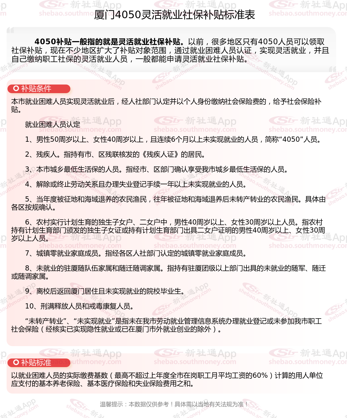 第一、灵活就业4050社保补贴错过怎么办厦门,灵活就业4050社保补贴申请条件是什么??4050补贴的获取条件,主要涵盖以下方面