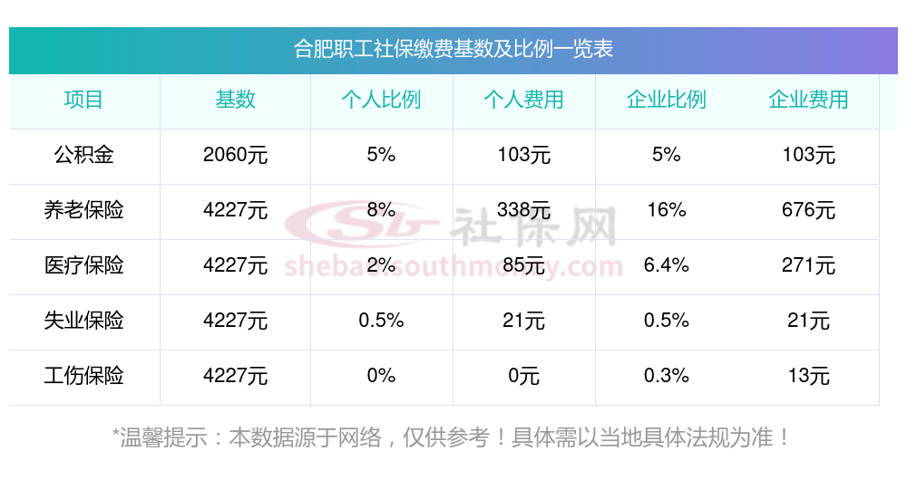 合肥社保公司交多少个人交多少?社保缴费比例多少?