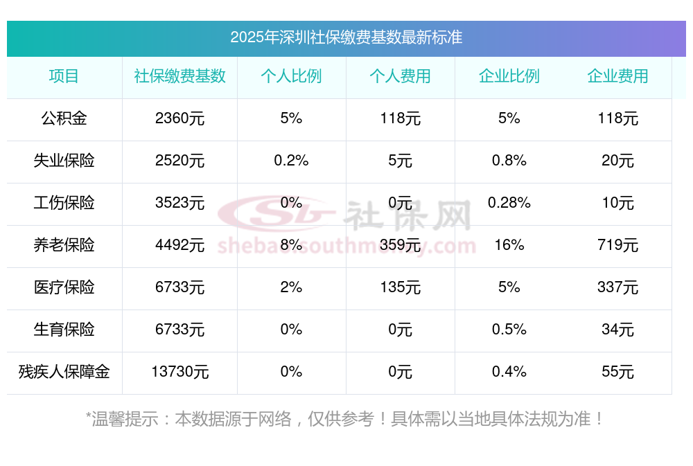 以职工上一年度1月至12月所有工资性收入所得的月平均额为基准,确定社保基数,此基数用于计算缴纳社会保险费的工资基数。 那么,2025年深圳社保缴费基数是多少,深圳社会险每月交多少钱,下面随新社通app小编一起来了解具体内容。