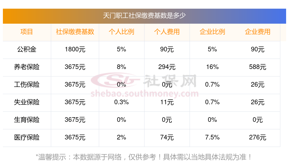 天门社保缴费比例和基数2025年来了 天门社保缴费最新调整一览表,新社通app-社保缴费查询工具提供的最新数据如下: