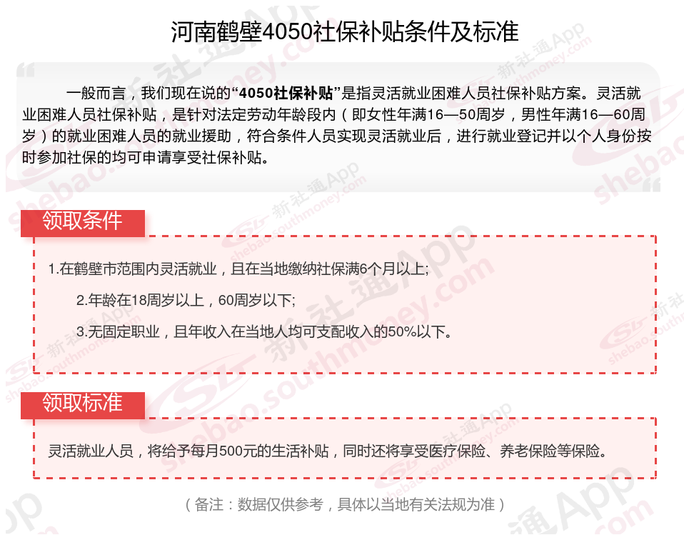 河南鹤壁补贴多少钱一个月?河南鹤壁灵活就业4050补贴标准: