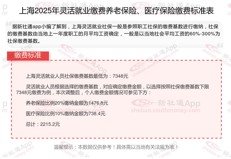 灵活就业社保缴费价格表来了!2024-2025年上海灵活就业人员社保需要缴费多少钱一个月?根据新社通app-社保缴费查询工具提供的最新数据如下: