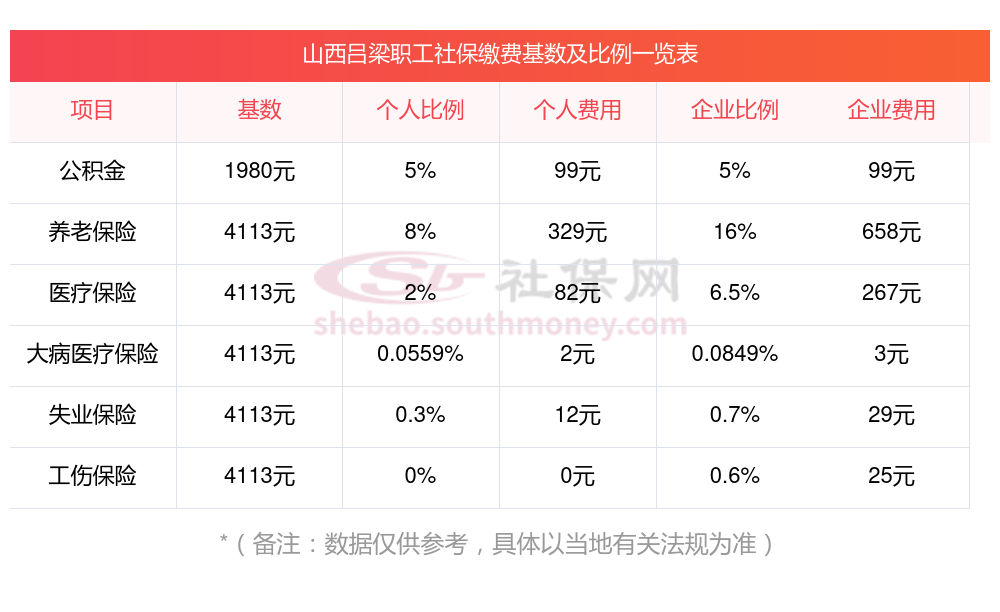一、山西吕梁职工社保缴费基数是多少钱一个月?职工社保缴纳最新标准是多少?