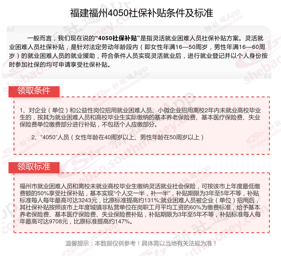 二、2025年福建福州4050社保补贴标准及条件(4050社保补贴多少钱?)