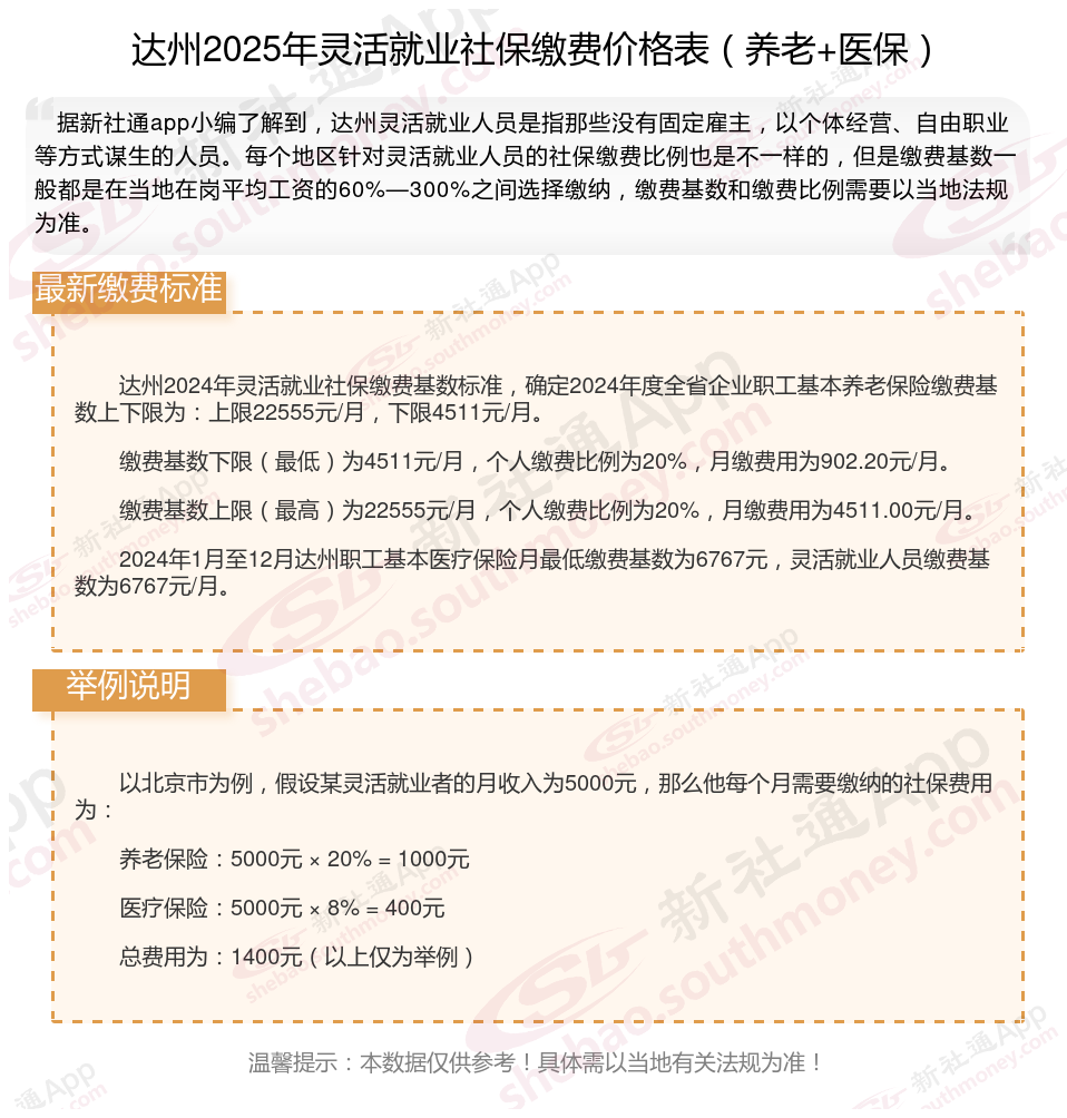 达州灵活就业人员基本养老保险缴费基数暂按不低于4511元;