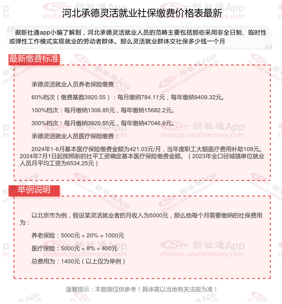 灵活就业社保是指针对灵活就业人员的社会保险制。灵活就业人员包括个体经营者、自由职业者、临时工等,他们没有固定的雇主,因此需要自行缴纳社会保险。那么2025年河北承德灵活就业人员社保需要交多少钱?下面随新社通小编一起来看看。