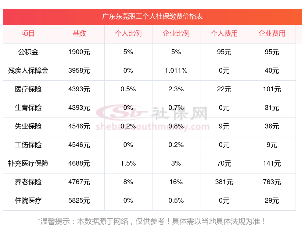 广东东莞社保公司交多少个人交多少?社保缴费比例多少?