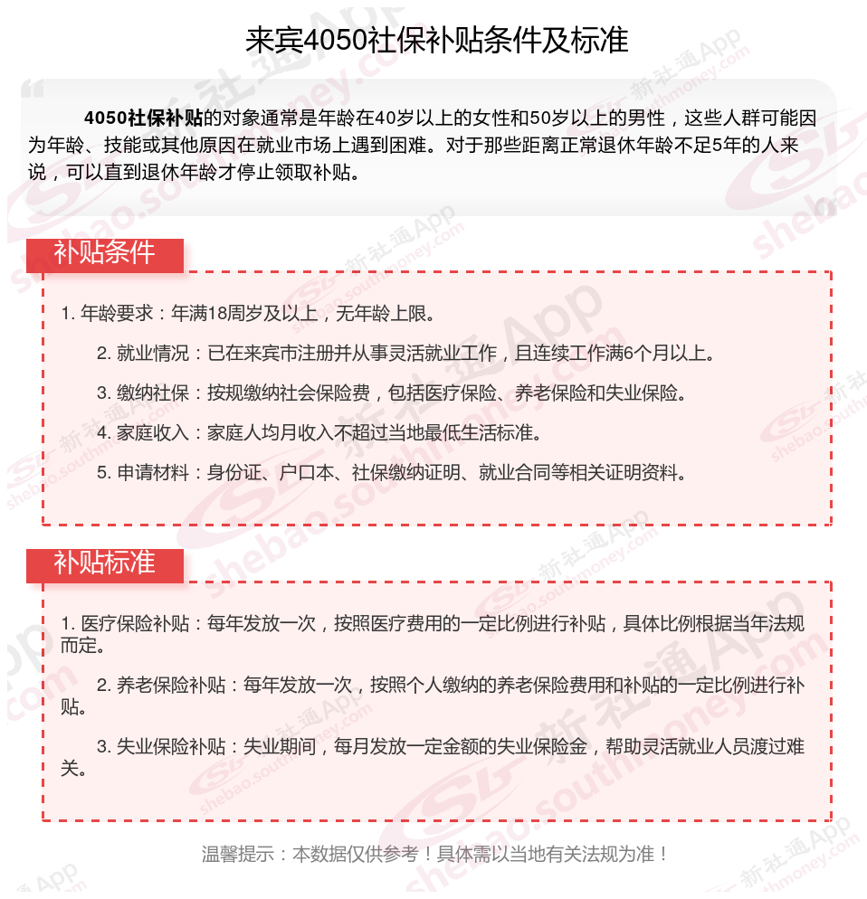二、来宾4050社保补贴标准及条件2026年,最新如下