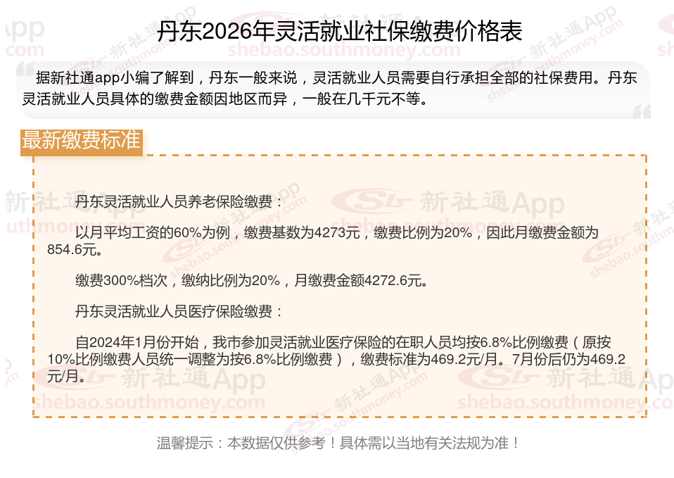 2026年丹东灵活就业人员社保需要交多少钱?社保缴费的金额取决于多个因素,包括缴费基数和缴费比例,且各地标准存在差异。下面随新社通小编一起来看看。