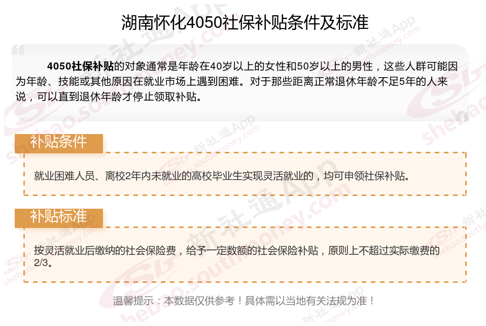 以上就是湖南怀化4050灵活就业困难人员社保补贴的相关内容,欢迎关注新社通/下载新社通APP了解更多五险一金专业资讯。