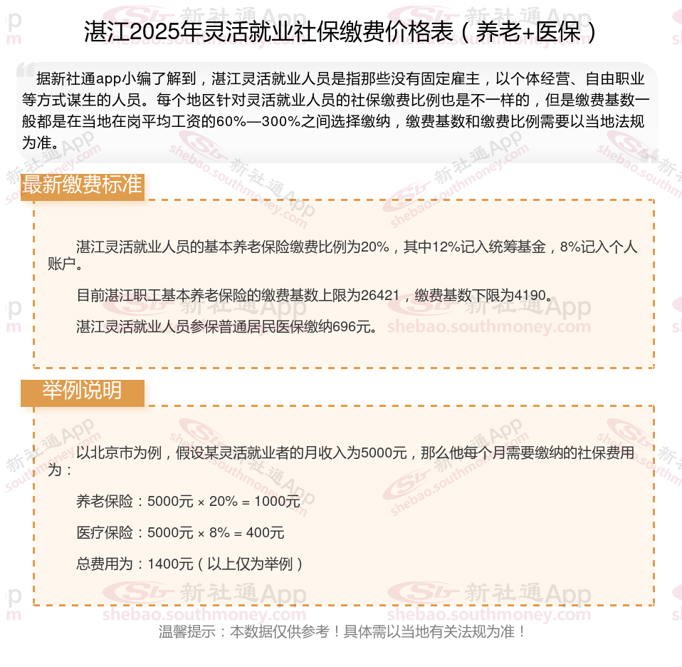 以上就是湛江灵活就业社保缴费的全部内容,数据及内容供参考!希望对你有帮助,欢迎关注新社通解锁更多社保专业资讯。