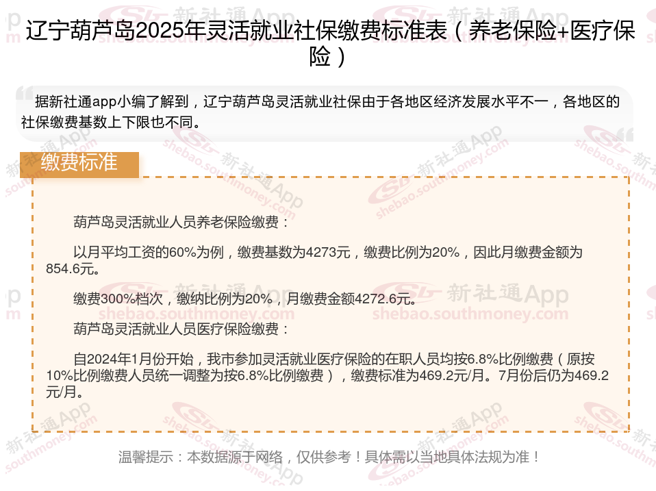 二、2025年辽宁葫芦岛灵活就业社保缴费标准表 辽宁葫芦岛灵活就业社保多少钱一个月?
