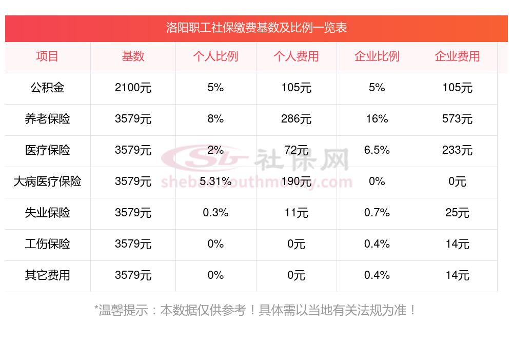 【社保攻略】明明白白交社保! 社保缴纳费用是根据个人的缴费基数和缴费比例来计算的。洛阳社保养老保险基数为:3579.00。那么一个月需要缴纳多少钱?跟着新社通小编一起来了解一下2025年洛阳社保缴费详情。