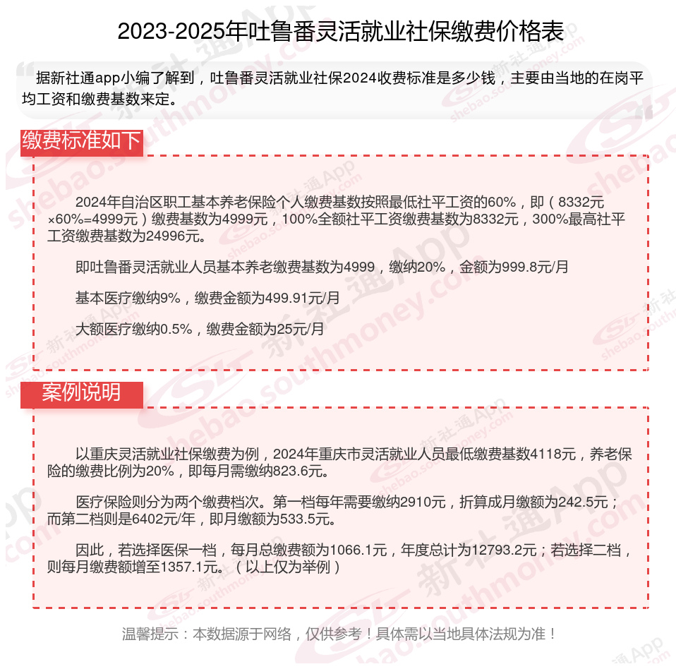 随着经济社会的不断发展,灵活就业群体日益壮大,其社保缴费问题也愈发受到关注。接下来随社保君了解一下2025年吐鲁番灵活就业人员社保交多少钱的详细内容。