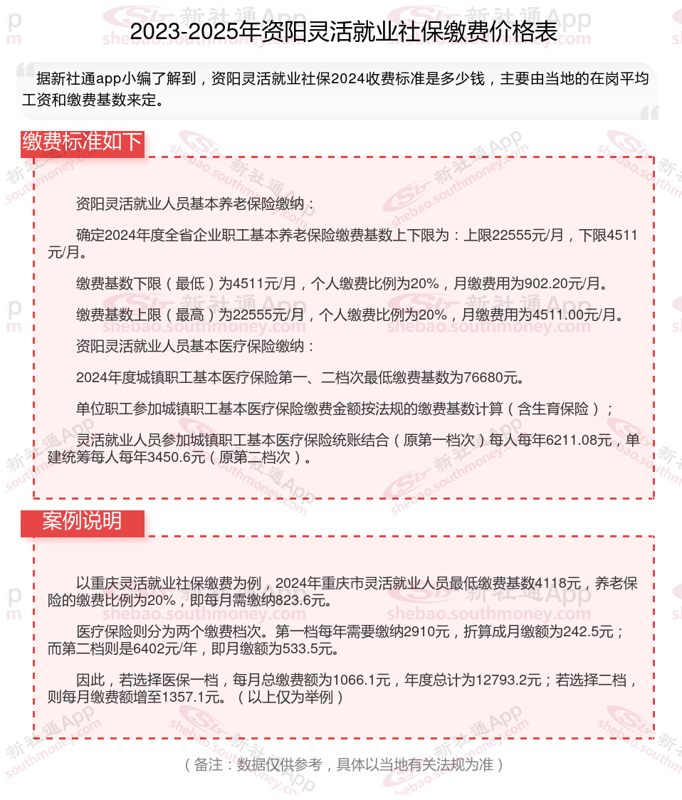 一、2024年资阳灵活就业社保缴费标准表 资阳灵活就业社保多少钱一个月?