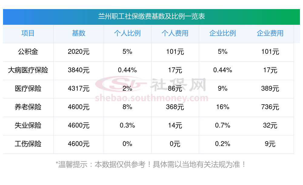 兰州职工社保缴费多少钱?2025年兰州职工社保缴费基数最新参考为:3579.00,具体如下: