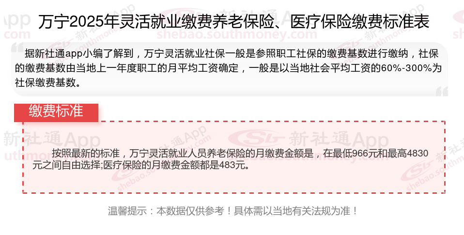 随着经济的发展和社会的进步,灵活就业人员越来越多,但是很多人不知道如何缴纳社保。本文将介绍2025年万宁灵活就业人员社保缴费基数及如何缴纳社保,能领取多少钱,帮助大家更好地了解灵活就业社保,随着新社通APP小编一起了解万宁灵活就业社保缴费最新资讯吧。