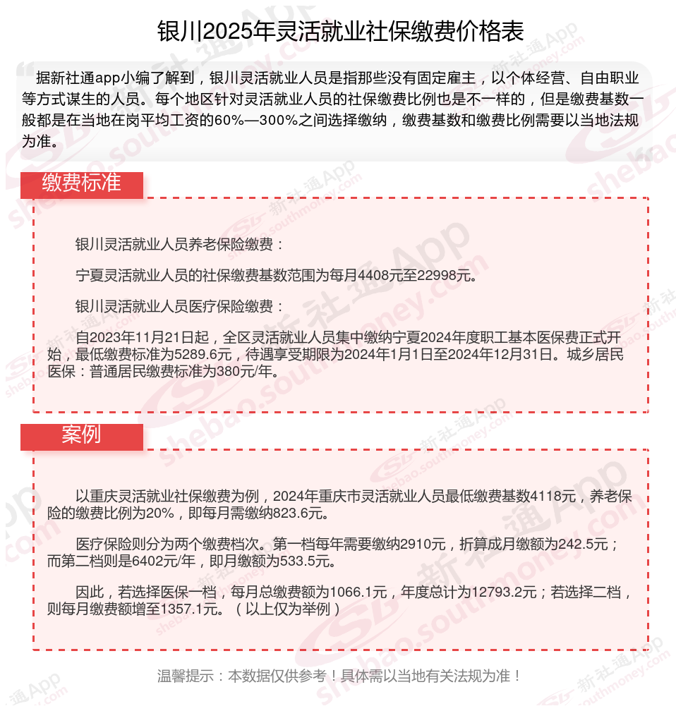 以上就是银川灵活就业社保缴费的全部内容,数据及内容供参考!希望对你有帮助,欢迎关注新社通app解锁更多社保专业资讯。