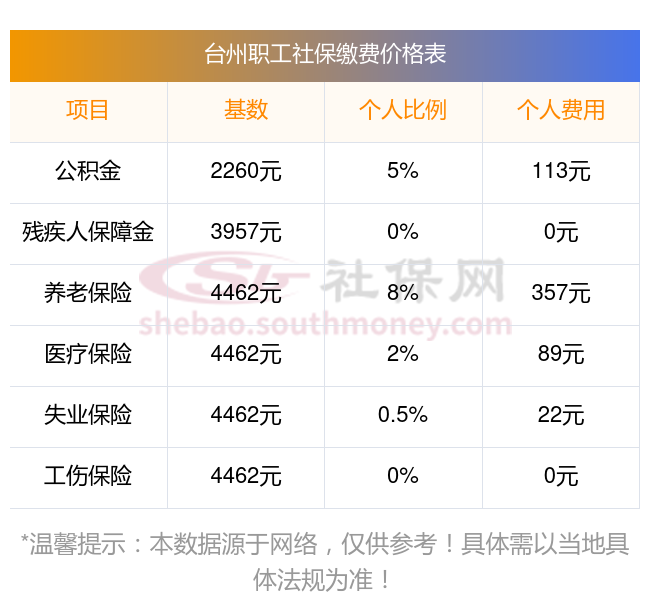 一、台州职工社保缴费基数是多少钱一个月?职工社保缴纳标准最新如下: