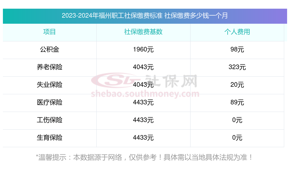 福州职工社保缴费多少钱?福州职工社保缴费基数最新参考为:3579.00,具体如下: