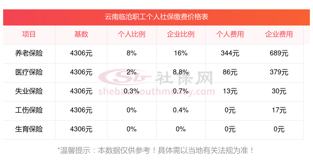 2025社保交多少钱?据新社通app获悉:云南临沧企业职工社保缴费基数为:3579.00元