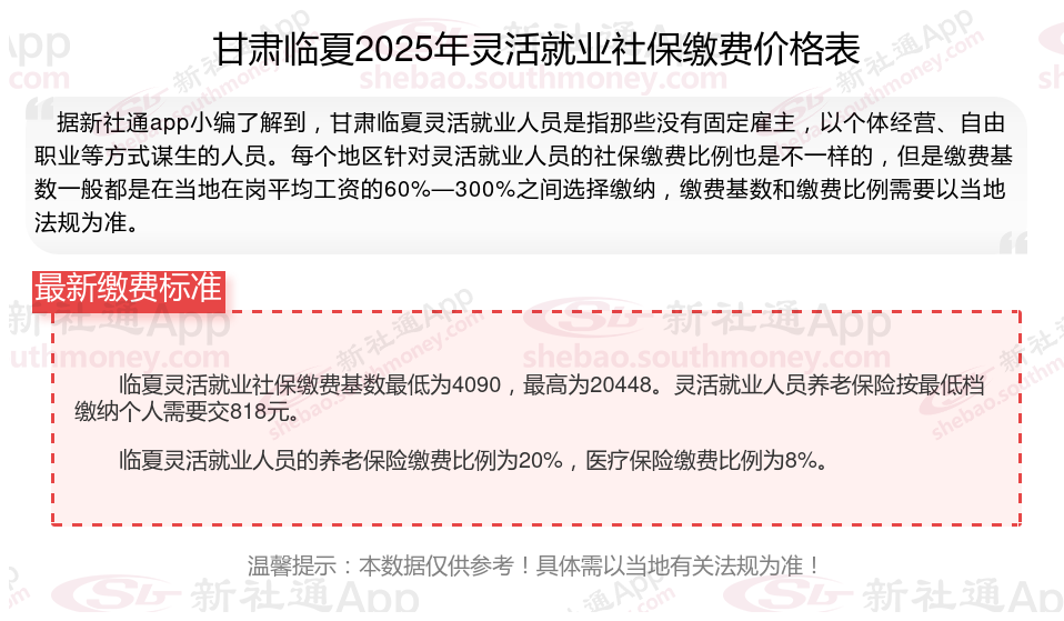 以上就是甘肃临夏灵活就业社保缴费的全部内容,数据及内容供参考!希望对你有帮助,欢迎关注新社通解锁更多社保专业资讯。