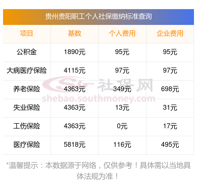 贵州贵阳职工社保缴费多少钱?贵州贵阳职工社保缴费基数最新参考为:3579.00,具体如下: