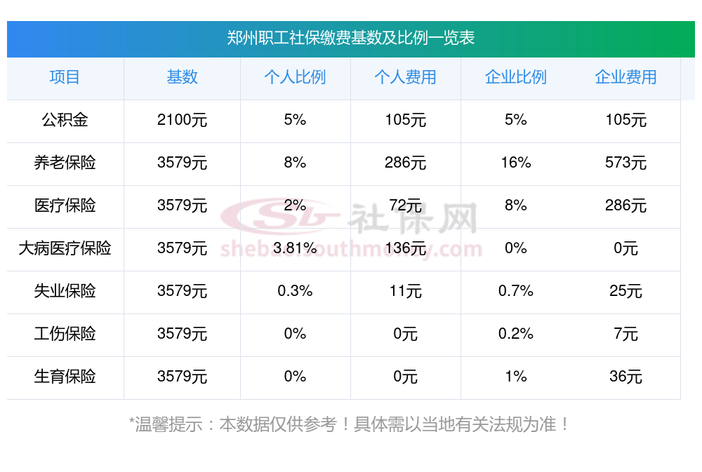 一、据新社通app获悉:郑州 企业职工社保缴费基数为:3579.00元,郑州社保缴费基数2025年最新标准如下: