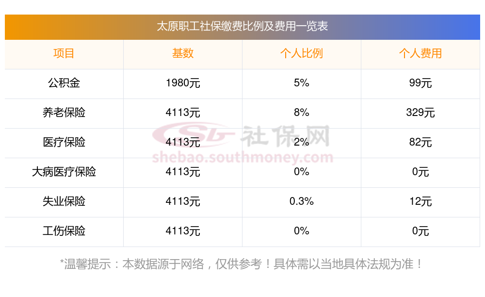 2025年太原社保费用明细表,个人要交多少钱?