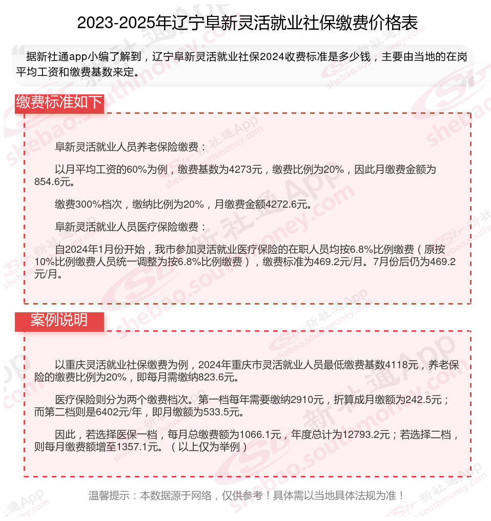 以上就是辽宁阜新灵活就业社保缴费的全部内容,数据及内容供参考!希望对你有帮助,欢迎关注新社通解锁更多社保专业资讯。