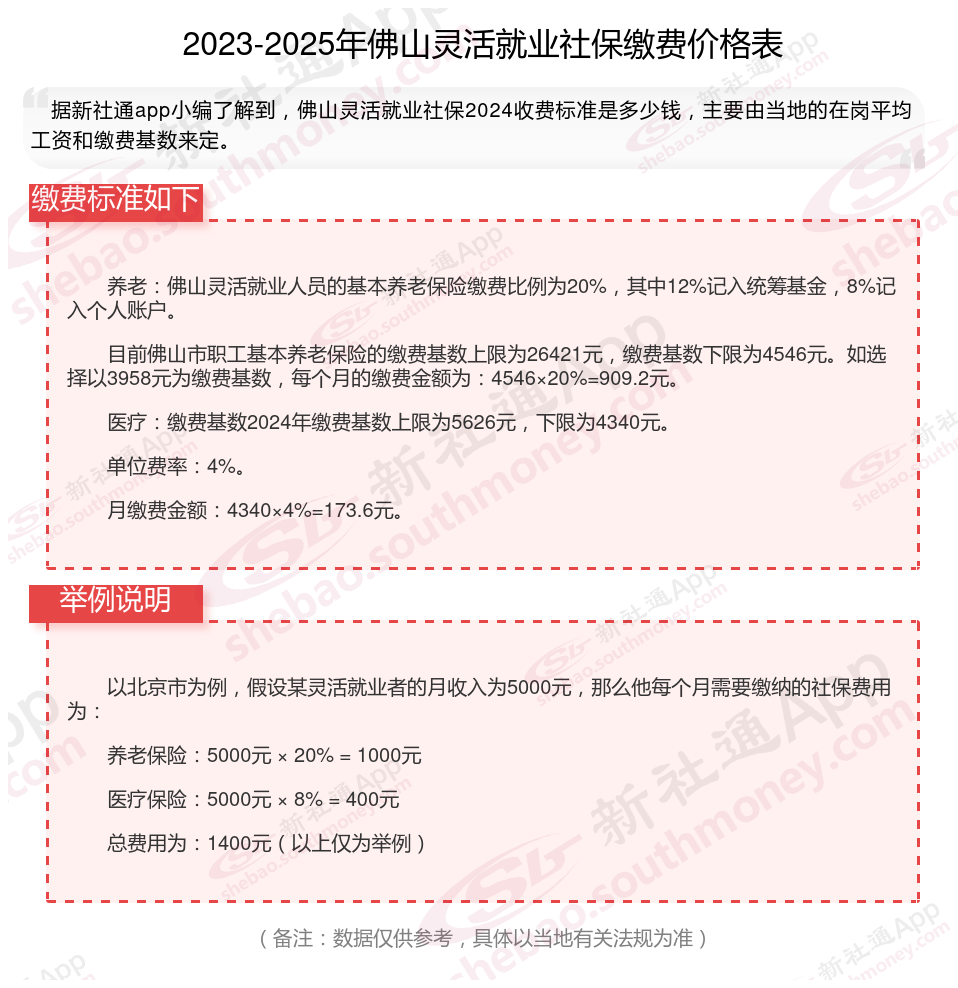 一、2025年佛山灵活就业社保缴费标准表 佛山灵活就业社保多少钱一个月?