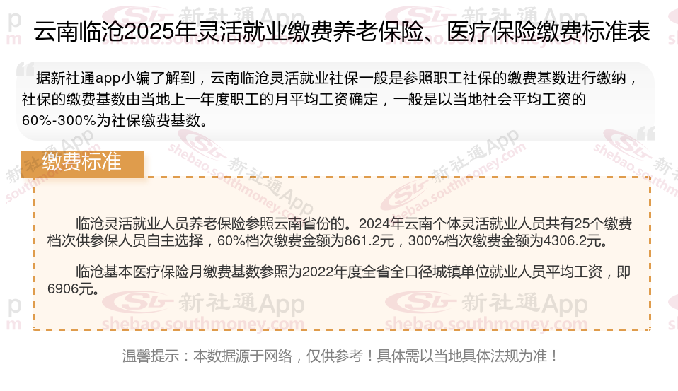 以上就是云南临沧灵活就业社保缴费的全部内容,数据及内容供参考!希望对你有帮助,欢迎关注新社通app解锁更多社保专业资讯。