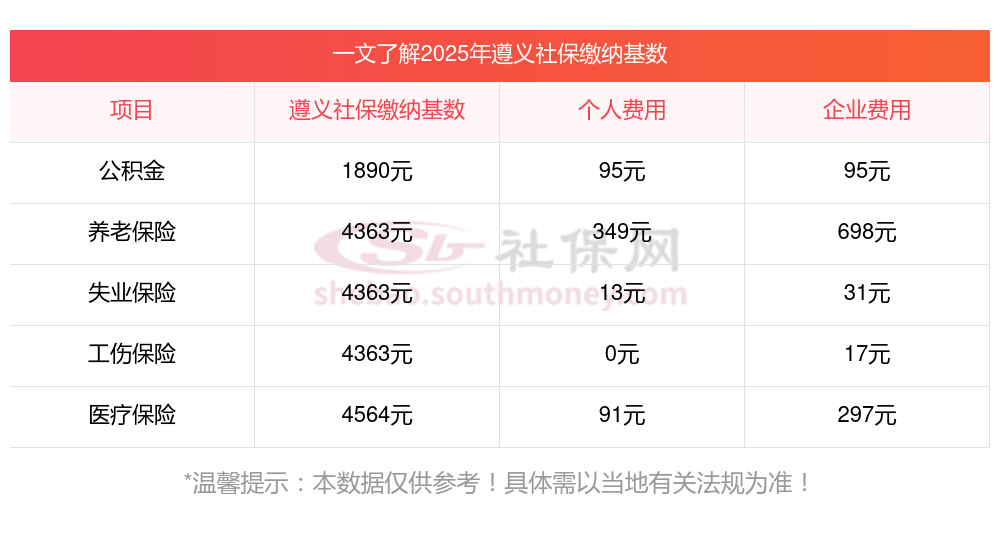 2025年以个人身份参加职工遵义社保的缴费标准是多少?据新社通app获悉:遵义企业职工社保缴费基数为:3579.00元。