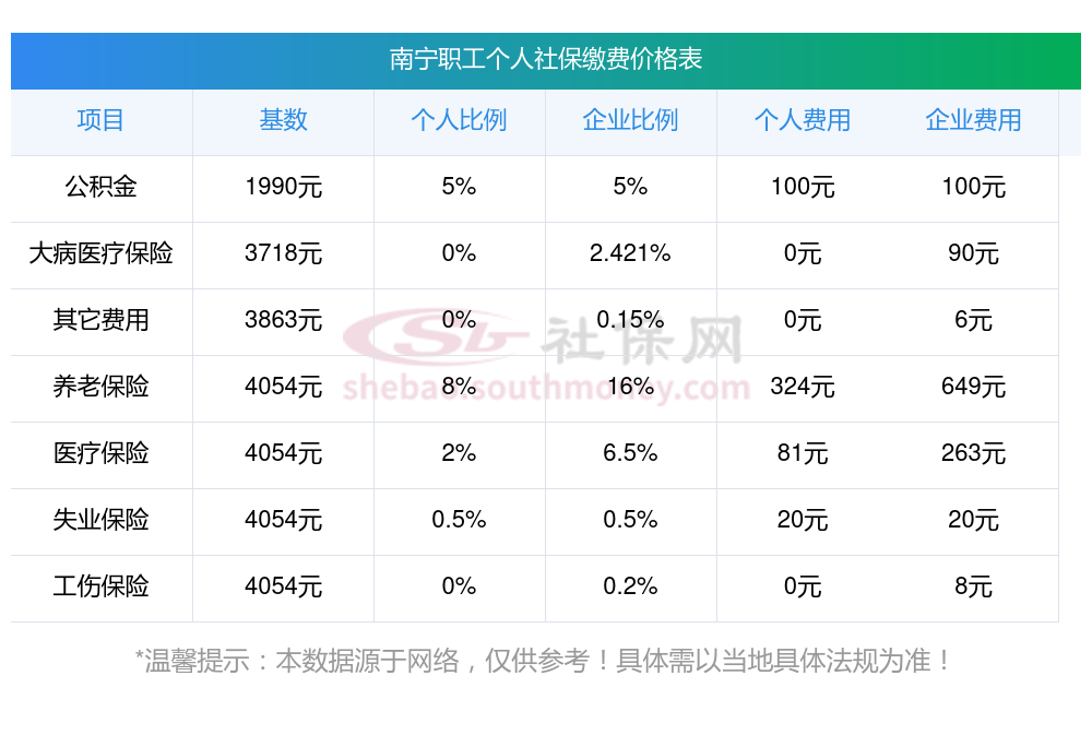 南宁职工社保缴费多少钱?南宁职工社保缴费基数最新参考为:3579.00,具体如下: