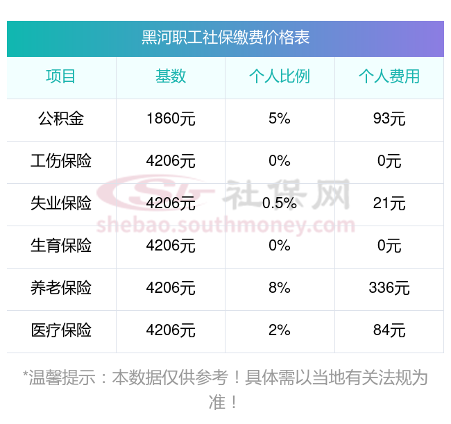 黑河职工社保缴费多少钱?黑河职工社保缴费基数最新参考为:3579.00,具体如下: