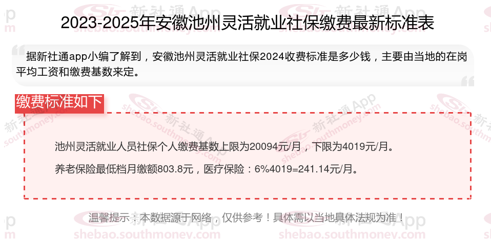 以上就是带来安徽池州灵活就业社保缴费标准相关知识,内容供参考,希望对你有帮助,欢迎关注/下载新社通APP解锁更多社保专业资讯。