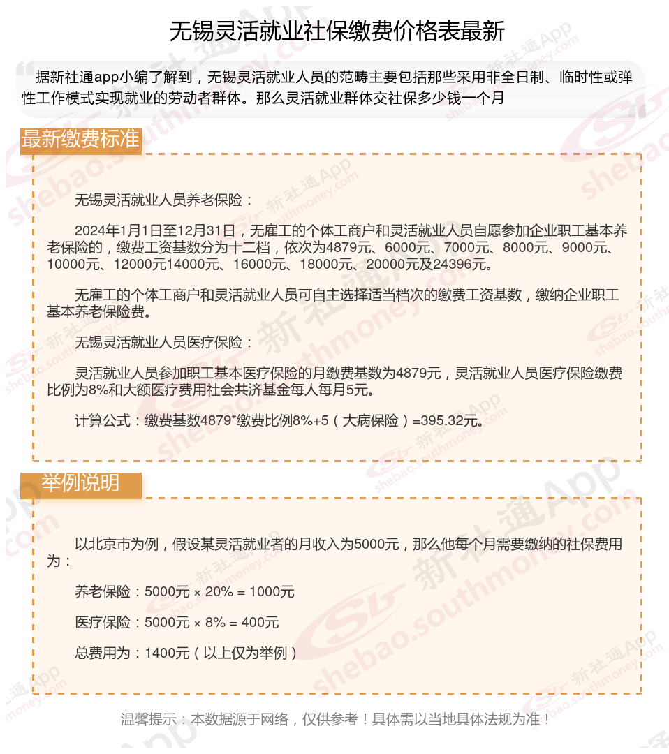 以上就是带来无锡灵活就业社保缴费标准相关知识,内容供参考,希望对你有帮助,欢迎关注/下载新社通app解锁更多社保专业资讯。