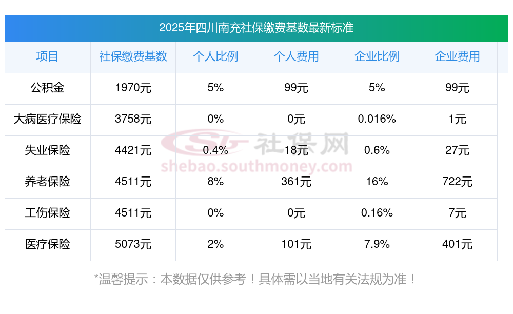 2024-2025年四川南充社保缴费标准最新是多少?据新社通app获悉,社保是为了保证劳动者在年老、失业、患病、工伤、生育而减少劳动收入时给予经济补偿的一项优惠方案。那你知道四川南充社保缴费标准是什么样的吗?看看你的社保需要缴纳多少钱?下面随新社通app小编一起来看看四川南充社保缴费标准详情。