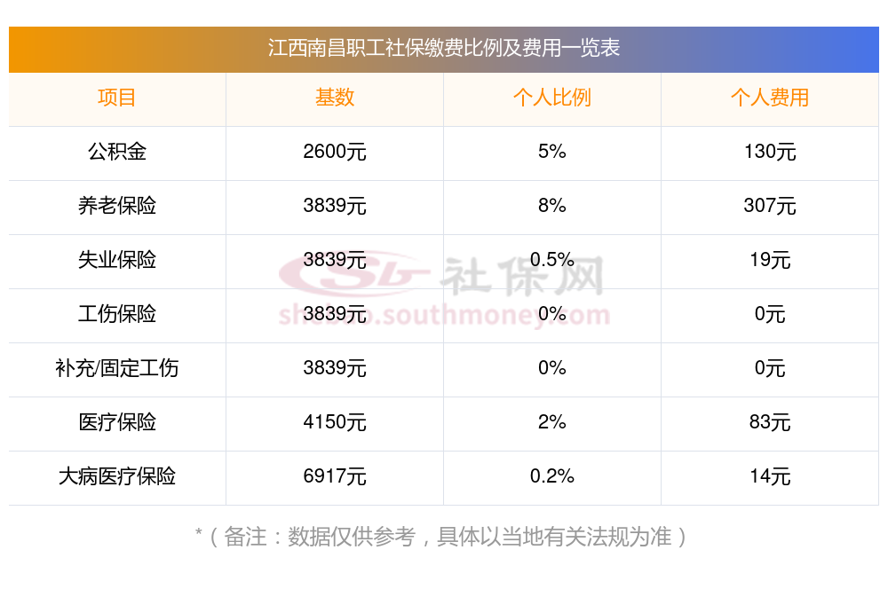 2025年江西南昌社保费用明细表,个人要交多少钱?