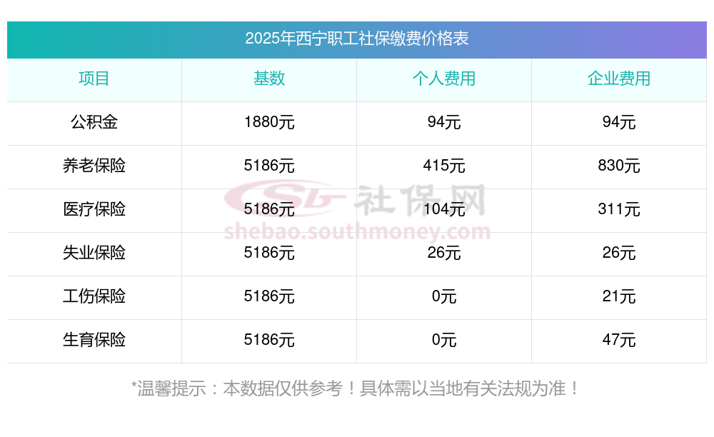 西宁职工社保缴费多少钱?2025年西宁职工社保缴费基数最新参考为:3579.00,具体如下: