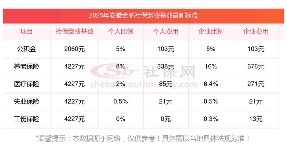 安徽合肥社保个人缴费全解:2025年最新标准,算完心里有数了!据新社通app获悉:安徽合肥企业职工社保缴费基数为:3579.00元。