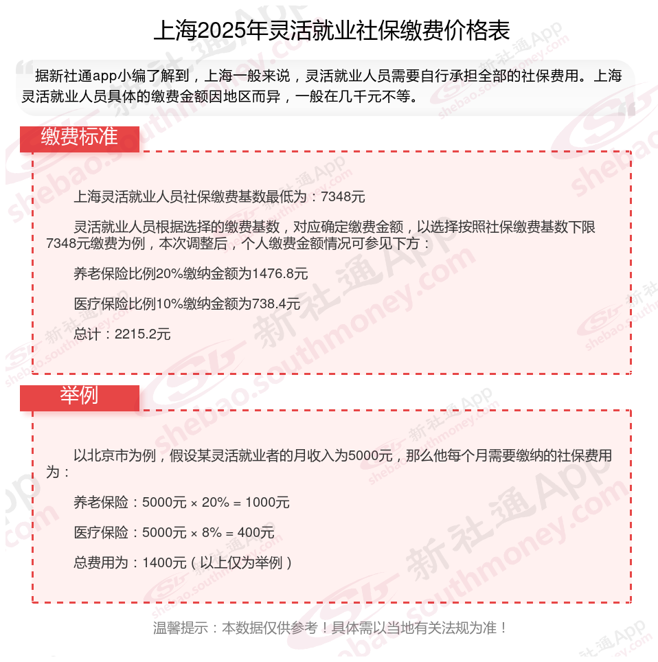 #上海灵活就业人员社会保险# 在当前的社保体系中,灵活就业人员作为特殊的群体,其社保缴费问题备受关注。本文就上海灵活就业人员社保缴费的种类和具体比例、费用,具体谈谈灵活就也人员的社保相关问题。下面随新社通小编一起来看看。
