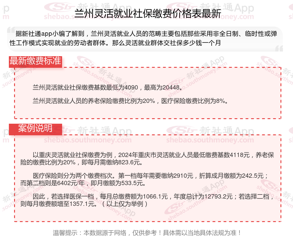 一、2024年兰州灵活就业社保缴费标准表 兰州灵活就业社保多少钱一个月?