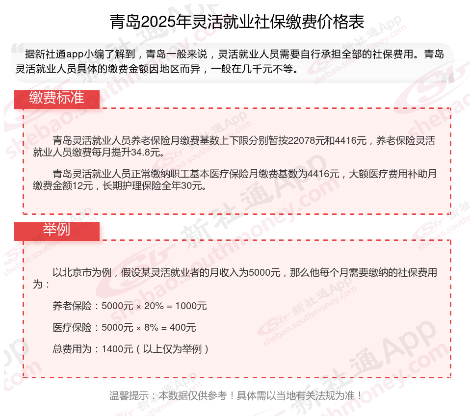 随着经济的发展和社会的进步,灵活就业人员越来越多,但是很多人不知道如何缴纳社保。本文将介绍2025年青岛灵活就业人员社保缴费基数及如何缴纳社保,能领取多少钱,帮助大家更好地了解灵活就业社保,随着新社通APP小编一起了解青岛灵活就业社保缴费最新资讯吧。