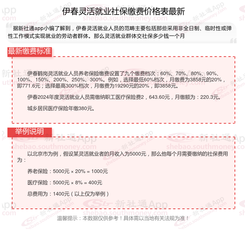 一、2024年伊春灵活就业社保缴费标准表 伊春灵活就业社保多少钱一个月?