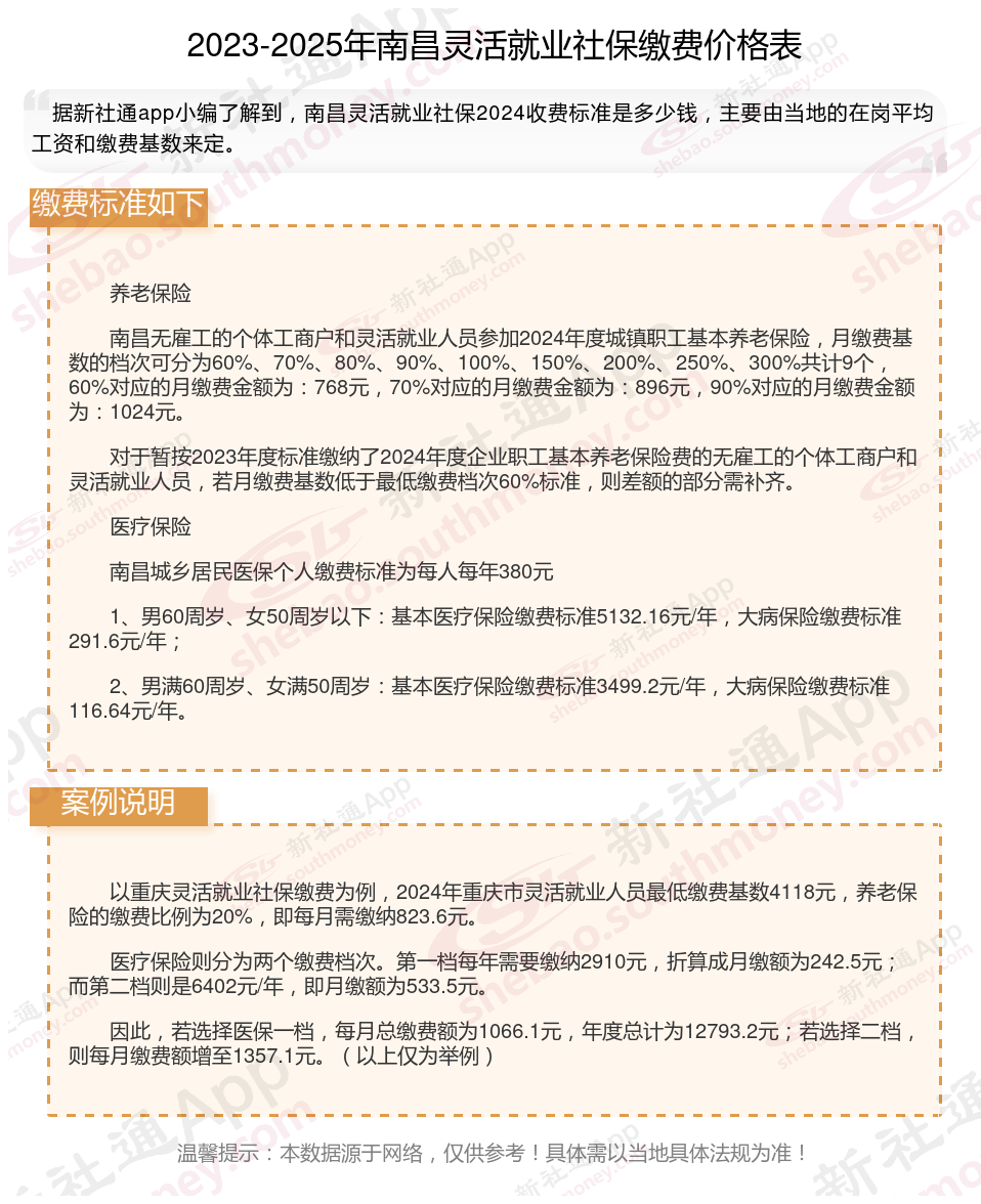 2025灵活就业社保缴费标准的调整,既体现了法规的连续性,又适应了经济社会发展的要求。灵活就业人员应根据自身情况,合理选择缴费基数和缴费比例,确保自身权益得到充分保证。那么2025年南昌灵活就业人员社保需要交多少钱?下面随新社通小编一起来看看。