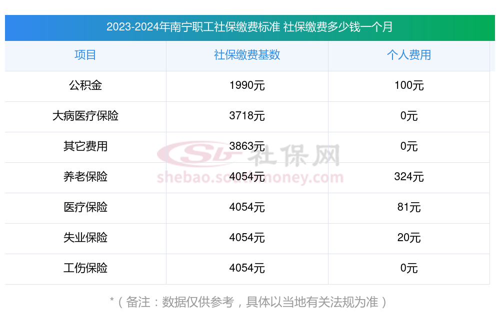 南宁个人社保交多少钱一个月?据新社通app获悉:南宁企业职工社保缴费基数为:3579.00元