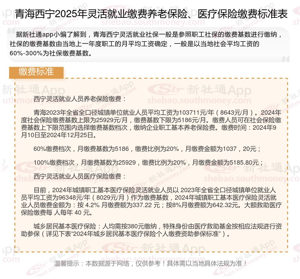 以上就是带来青海西宁灵活就业社保缴费标准相关知识,内容及数据仅供参考,希望对你有帮助,欢迎关注/下载新社通app解锁更多社保专业资讯。